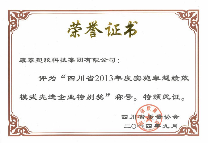 圖二:四川省2013年度實(shí)施卓越績(jī)效模式先進(jìn)企業(yè)特別獎(jiǎng)