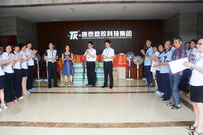?????? 崇州市人力資源和社會(huì)保障局領(lǐng)導(dǎo)同志的慰問給工作在酷暑中的一線員工帶來了一絲絲涼意,鼓舞了士氣,激發(fā)了大家奮發(fā)工作、銳意創(chuàng)新的熱情。人社局領(lǐng)導(dǎo)對(duì)公司的發(fā)展前景給予了充分的肯定,表達(dá)了康泰塑膠科技集團(tuán)有限公司是驅(qū)動(dòng)崇州經(jīng)濟(jì)的一艘航母,為崇州的就業(yè)做出突出貢獻(xiàn)的重要性。?????? 一份清涼、一份關(guān)懷、一本政策宣傳書,市人社局的“送清涼 進(jìn)企業(yè)”活動(dòng),不僅讓康泰員工從身體上感受到絲絲的清涼,更讓員工從心理上感受到濃濃的關(guān)愛,感受到黨和政府的關(guān)懷。