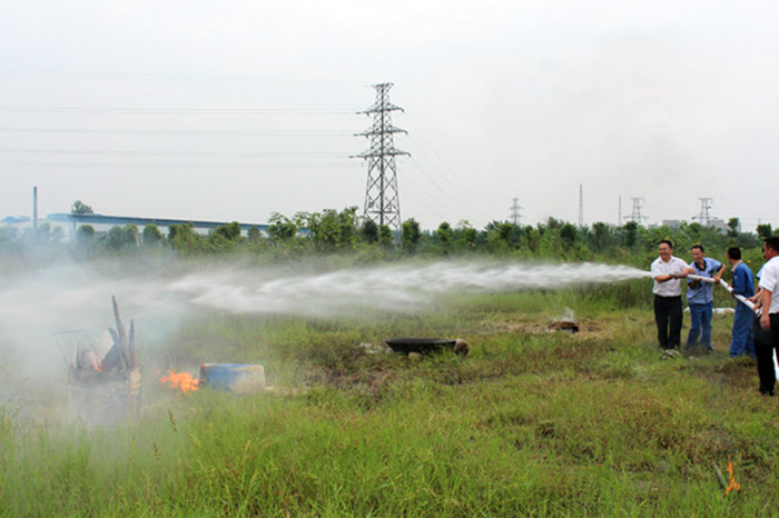 ??? 2013年9月3日,在B區(qū)空地,由安全管理辦公室組織實(shí)施的消防滅火演練順利舉行。車間主任、班組長、員工代表和庫房員工參加了此次滅火演練。