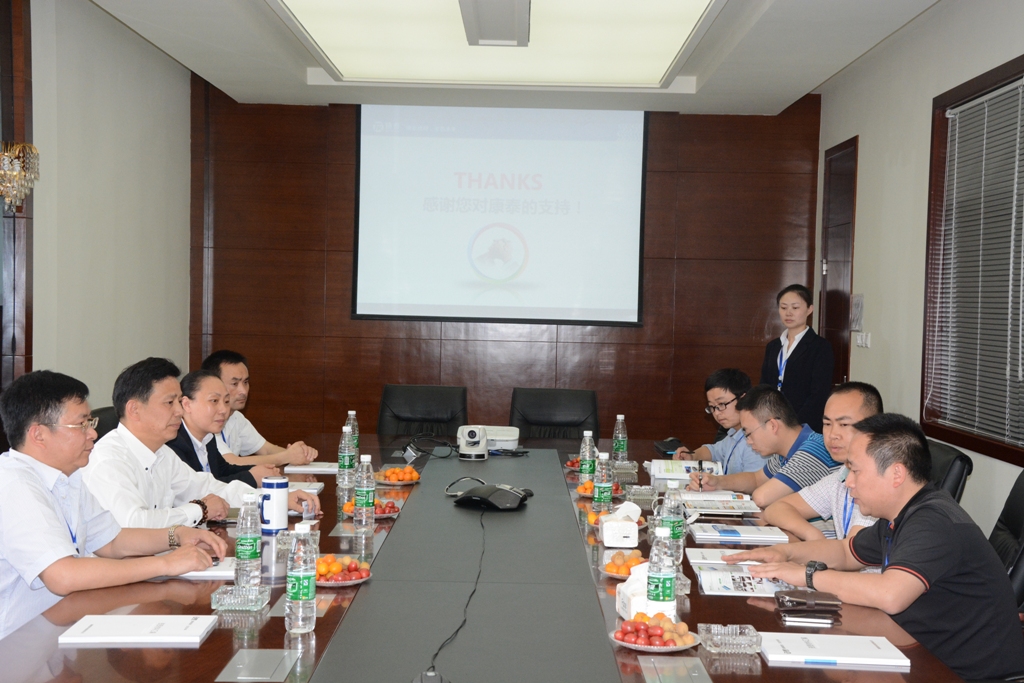 ????? 4月17日下午,四川恒邦集團招采部部長吳強,以及項目部,技術(shù)部相關(guān)領(lǐng)導(dǎo)一行在我公司四川區(qū)域經(jīng)銷商肖淑蘭的帶領(lǐng)下蒞臨康泰參觀考察,集團公司林總裁,營銷中心總監(jiān)何朝暉,營銷辦公室主任王建等相關(guān)領(lǐng)導(dǎo)在3樓302會議室接待了恒邦集團考察團一行。