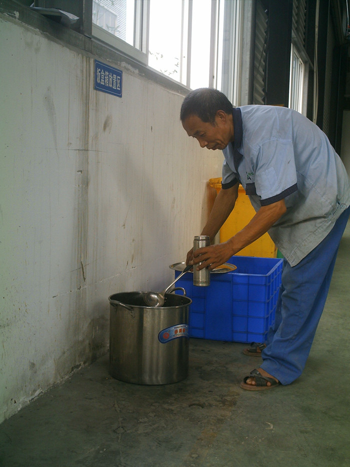 ??? 炎炎夏日,辛勤的員工們依舊堅守在工作崗位。這時,一杯綠豆湯能為他們清熱消暑,解除高溫帶給身體的疲憊。2013年8月22日,在管件車間,記者見到員工鄧火全正在舀綠豆湯,并向他了解夏季公司為員工準備綠豆湯的具體情況。