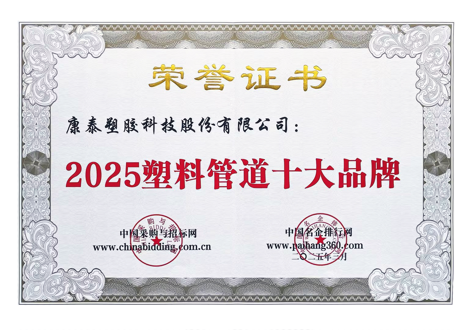 康泰集團榮膺中國輕工塑料管道行業(yè)十強企業(yè)2025/07/28 1649近日,中國塑料加工工業(yè)協(xié)會公布中國輕工塑料管道行業(yè)十強企業(yè)入圍名單,康...read more