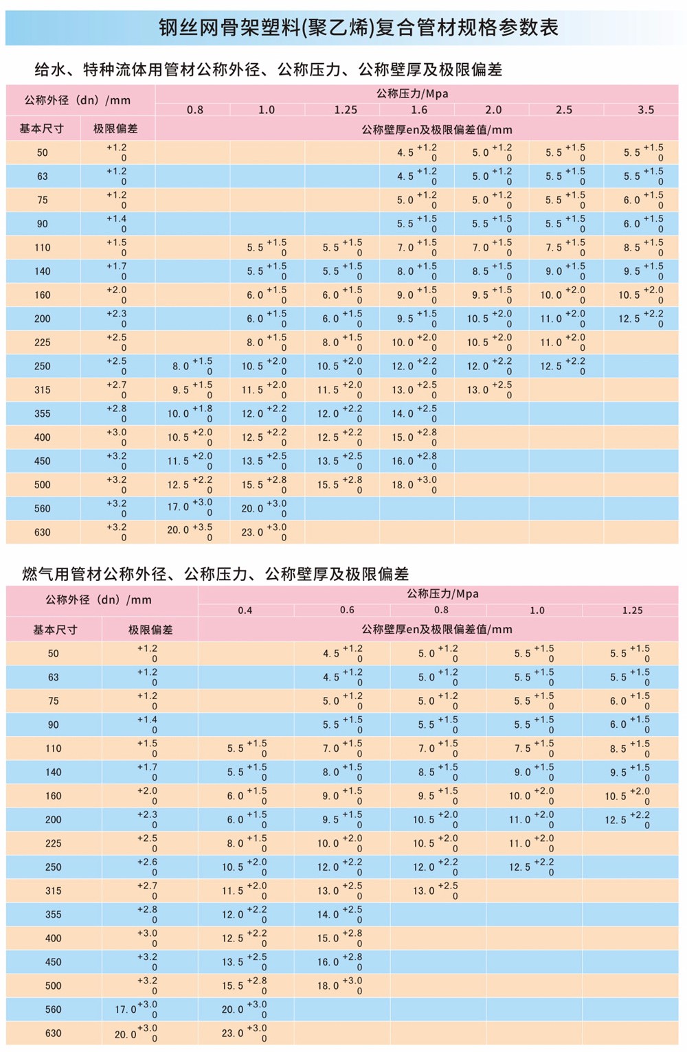 鋼絲網(wǎng)骨架管塑料(聚乙烯)復(fù)合管道系列: